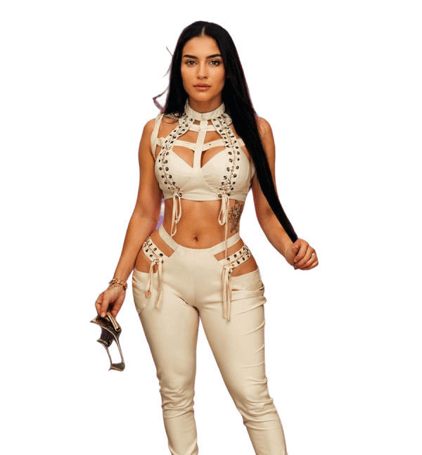 Eyes turner leather cream pants sets
