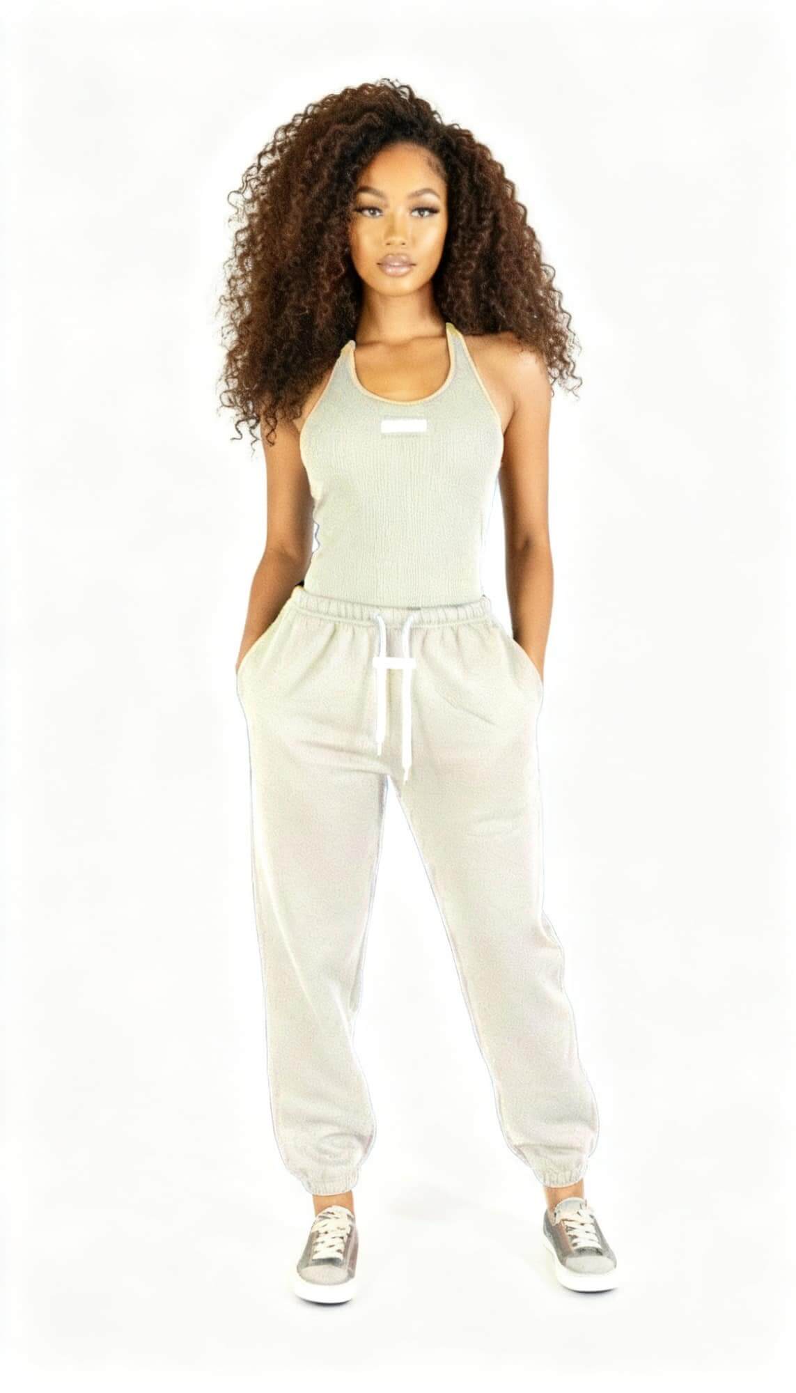 A neutral grey matching set that you’ll reach for constantly. The grey tone is versatile enough to pair with any shoes or accessories. Same quality construction and soft fabric as the other jogger sets. The relaxed fit works for all body types without looking sloppy. This is the set you wear when you want to be comfortable but still look like you have your life together. Grey hides wear better than lighter colors and stay looking fresh longer.